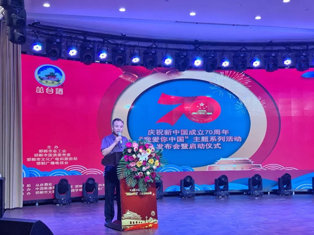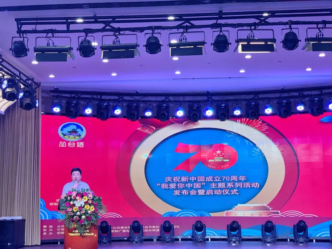 “我愛(ài)你中國(guó)——慶祝新中國(guó)成立70周年”主題活動(dòng)由叢臺(tái)酒業(yè)獨(dú)家冠名贊助、邯鄲市總工會(huì)、邯鄲市國(guó)資委黨委、邯鄲市文化廣電和旅游局、邯鄲廣播電視臺(tái)聯(lián)合舉辦,邯鄲廣播電視臺(tái)新聞綜合頻道、邯鄲市國(guó)學(xué)研究會(huì)、邯鄲市成語(yǔ)文化有限公司承辦,邯鄲各縣(市、區(qū))文廣和旅游局、縣(市、區(qū))廣播電視臺(tái)、市文聯(lián)(書(shū)協(xié)和美協(xié))、中國(guó)聯(lián)通邯鄲分公司協(xié)辦。