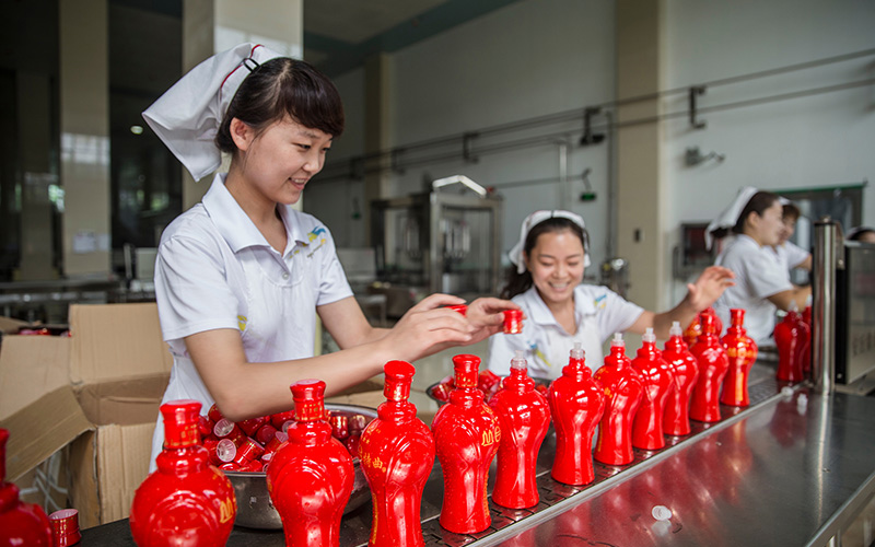一粒粒糧食要經(jīng)過(guò)百轉(zhuǎn)千回的工序,才能變成一滴滴美酒來(lái)到包裝中心。而這些美酒經(jīng)包裝女工的巧手裝扮,才能華麗出廠(chǎng),擺上千家萬(wàn)戶(hù)的餐桌。包裝中心的建筑面積是2.1萬(wàn)平方米,四層結(jié)構(gòu),一樓是生產(chǎn)區(qū),二樓是參觀通道,三樓是酒盒區(qū),四樓是酒箱區(qū),酒盒、酒箱分別沿滑梯送到一樓組裝。整個(gè)生產(chǎn)區(qū)設(shè)有自動(dòng)沖瓶機(jī)、翻轉(zhuǎn)瀝瓶機(jī)、智能感應(yīng)灌裝機(jī)等組成的六條自動(dòng)化灌裝生產(chǎn)線(xiàn),目前每條流水線(xiàn)每小時(shí)可以包裝7000瓶,效率極高。