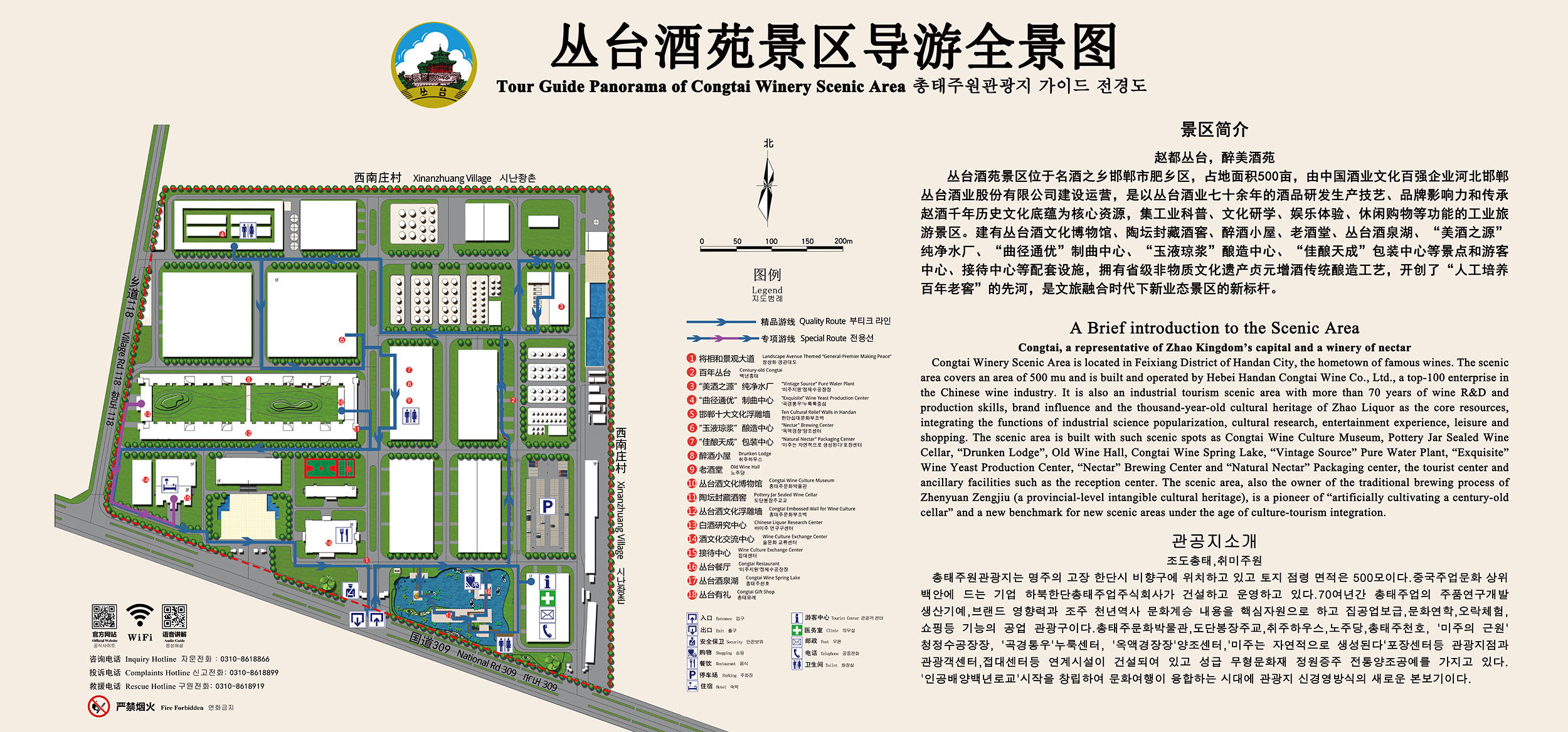 河北邯鄲叢臺(tái)酒業(yè)工業(yè)旅游景區(qū)依托邯鄲悠久的歷史和淵遠(yuǎn)的酒文化底蘊(yùn),已建成集固態(tài)釀造、科研開(kāi)發(fā)、科普教育、酒文化觀光等于一體的園林式釀酒工業(yè)園區(qū)。目前已被評(píng)定為國(guó)家AAAA級(jí)旅游景區(qū),景區(qū)總占地500畝涵蓋以釀造車間、包裝車間、陶壇酒窖為主的工藝觀光線和叢臺(tái)酒文化博物館、文化浮雕墻、將相和大道、酒泉湖等文化景觀節(jié)點(diǎn),成為北方戰(zhàn)漢建筑風(fēng)格的中國(guó)酒文化休閑旅游目的地。