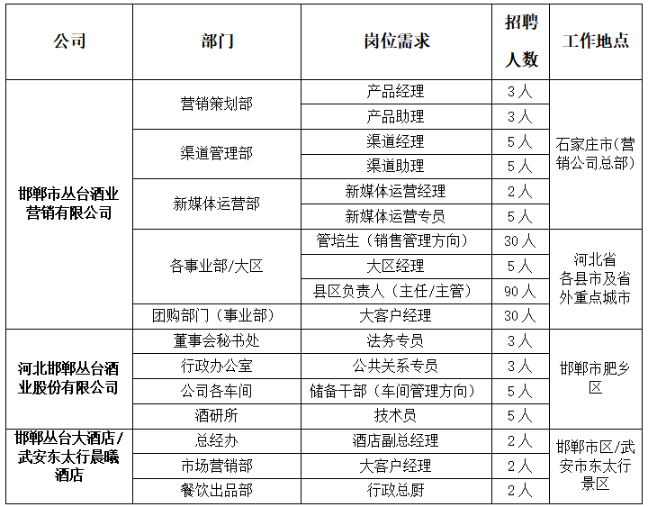 叢臺(tái)酒業(yè)集團(tuán)2023年大型社會(huì)招聘公告
