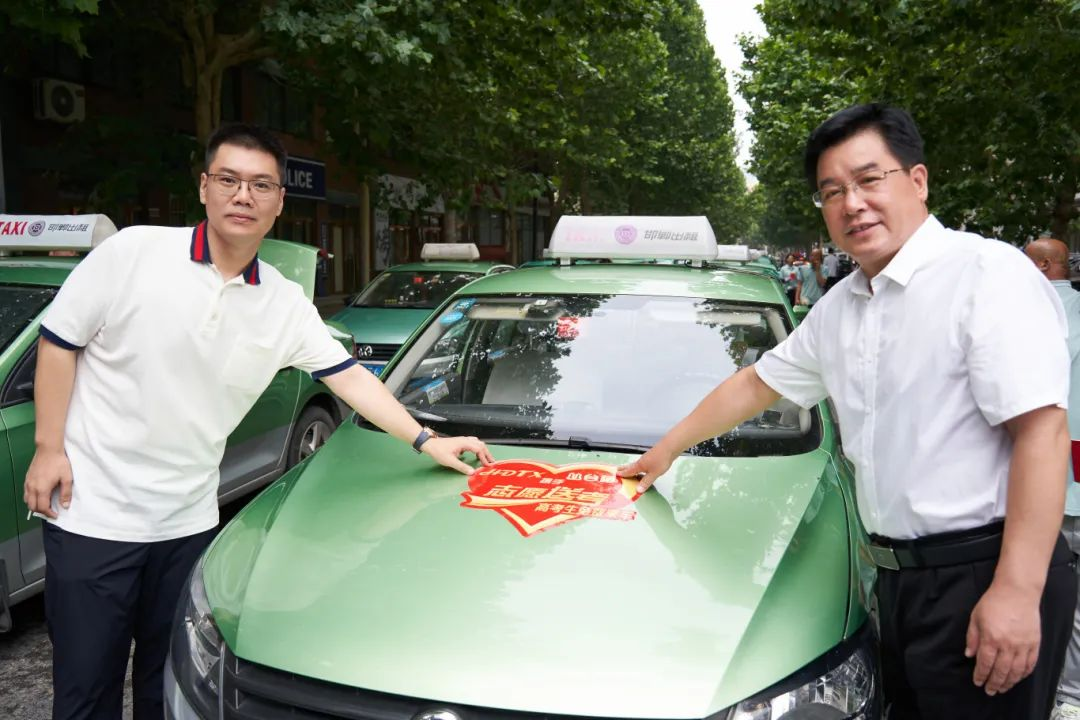 “志愿送考”啟動儀式現(xiàn)場,與會領(lǐng)導(dǎo)為車輛張貼“志愿送考”標(biāo)識,同時為志愿者頒發(fā)活動紀(jì)念證書。為考生助力,為夢想加油!一輛輛出租車整齊集結(jié),蓄勢待發(fā),成為一道靚麗的風(fēng)景線。