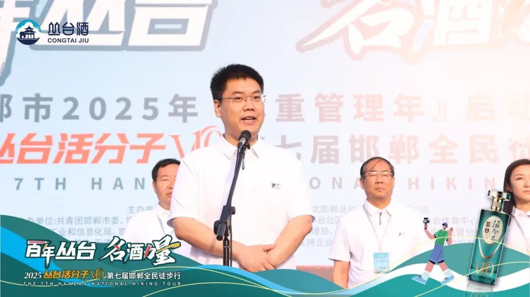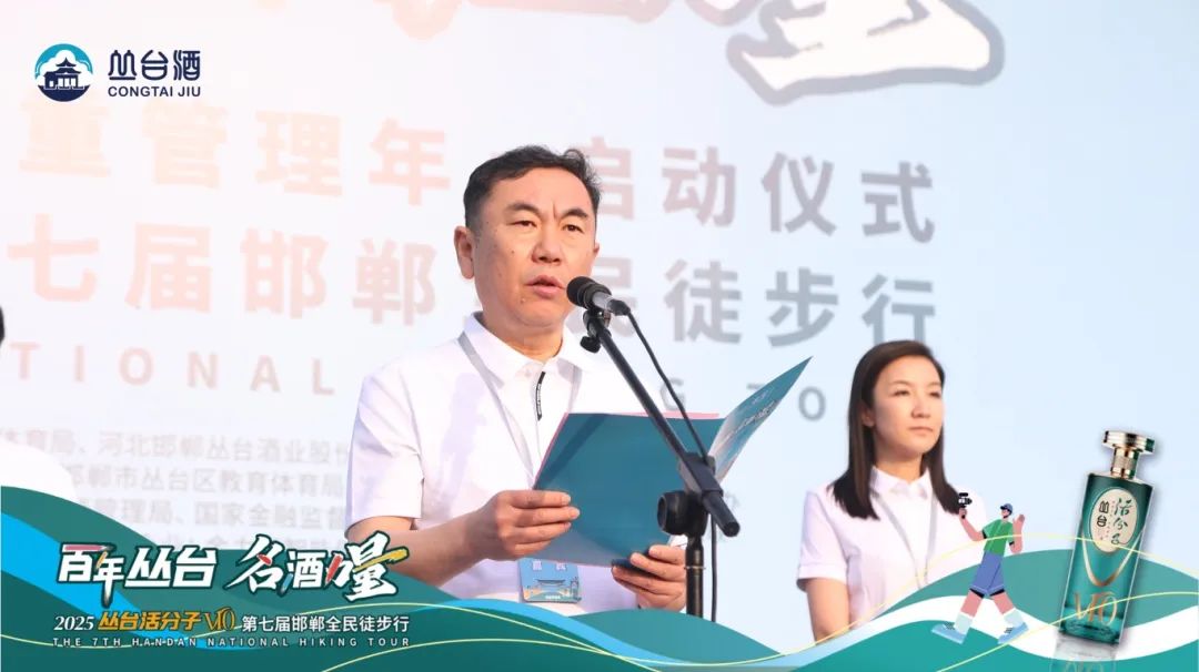 本次活動(dòng)由叢臺(tái)酒業(yè)攜手邯鄲市衛(wèi)生健康委、邯鄲市體育局主辦,由共青團(tuán)邯鄲市委、邯鄲市文化廣電和旅游局、邯鄲市總工會(huì)、邯鄲市叢臺(tái)區(qū)教育體育局、邯鄲市社會(huì)體育中心、邯鄲市愛(ài)衛(wèi)辦邯鄲市工業(yè)和信息化局、邯鄲市民政局、邯鄲市商務(wù)局、邯鄲市市場(chǎng)監(jiān)督管理局、國(guó)家金融監(jiān)督管理總局邯鄲監(jiān)管分局、邯鄲市婦聯(lián)、肥鄉(xiāng)區(qū)政府協(xié)辦,并得到怡寶礦泉水等企業(yè)鼎力支持。出席活動(dòng)領(lǐng)導(dǎo)有:邯鄲市人大常委副主任李海平,邯鄲市衛(wèi)健委黨組書(shū)記李之杰,共青團(tuán)邯鄲市委書(shū)記徐幗一,邯鄲市婦聯(lián)黨組書(shū)記、主席陳國(guó)慶,邯鄲市文化廣電和旅游局副局長(zhǎng)胡利娜,邯鄲市體育局黨組成員、副局長(zhǎng)韓林學(xué),邯鄲市總工會(huì)黨組成員、副主席周志理,邯鄲市民政局黨組副書(shū)記、副局長(zhǎng)、三級(jí)調(diào)研員卜炳獻(xiàn),邯鄲市工業(yè)和信息化局副局長(zhǎng)趙鋒,邯鄲市商務(wù)局副局長(zhǎng)薛學(xué)林,邯鄲市教育局副局長(zhǎng)高嘉藝,邯鄲市體育局三級(jí)調(diào)研員殷衛(wèi)兵,國(guó)家金融監(jiān)督管理總局邯鄲監(jiān)管分局三級(jí)調(diào)研員趙代政,邯鄲市商務(wù)局四級(jí)調(diào)研員劉永峰,邯鄲市愛(ài)衛(wèi)辦副主任王軍磊,邯鄲市肥鄉(xiāng)區(qū)人民政府副區(qū)長(zhǎng)韓峰,叢臺(tái)酒業(yè)集團(tuán)總經(jīng)理李鵬亮?;顒?dòng)以“百年叢臺(tái),名酒力量”為核心主題,熱烈響應(yīng)邯鄲市“體重管理年”健康倡議,同時(shí)獻(xiàn)禮叢臺(tái)酒業(yè)建廠(chǎng)80周年,以徒步為紐帶,倡導(dǎo)全民科學(xué)健身與健康生活方式,為建設(shè)活力邯鄲、健康邯鄲注入新動(dòng)能。