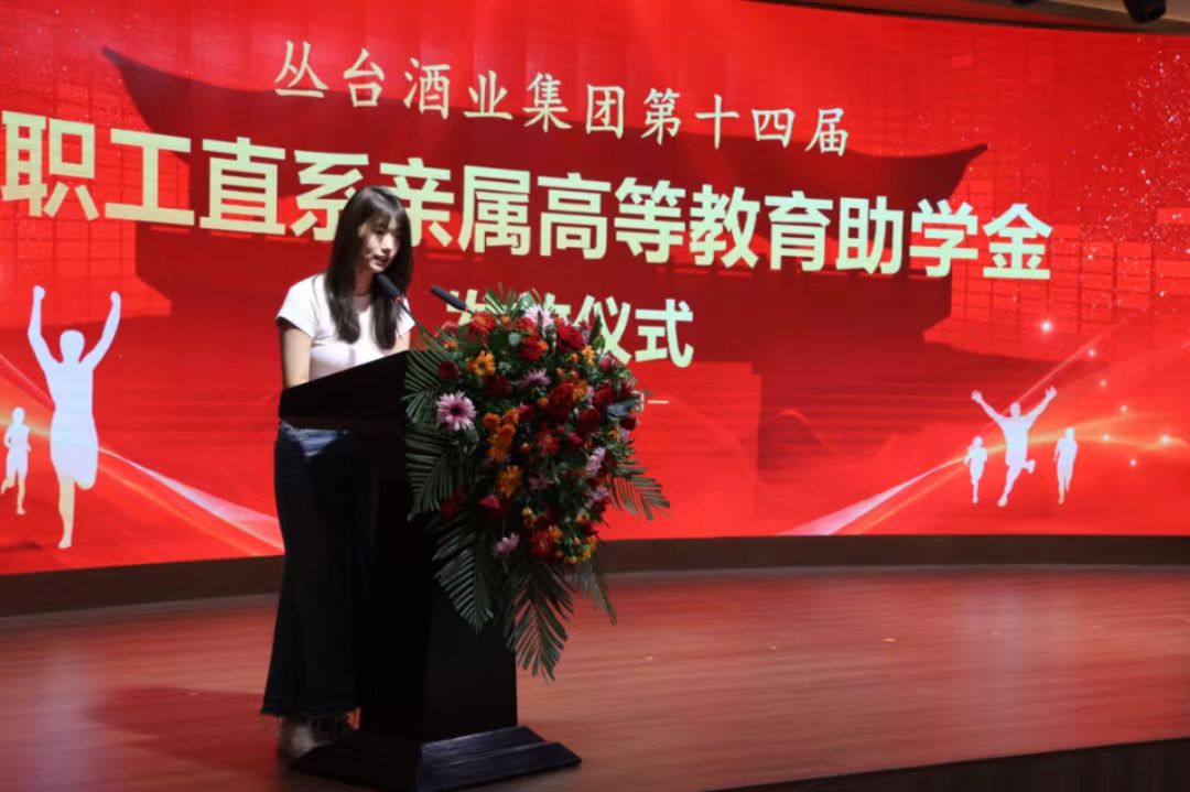 受助學(xué)生代表鄭洋洋在發(fā)言中說到:我的父親是叢臺酒業(yè)釀造車間的一名普通釀酒工,從事釀酒工作二十多年?;仡欉^往,家庭經(jīng)濟條件雖不算寬裕,但父母用勤勞的雙手為我撐起了求學(xué)的天空。他們把省下來的每一分錢都用在我身上,自己依舊是樸素度日,那些默默付出的瞬間,既是我前行時最溫暖的鎧甲,也偶爾會讓我在夜深時暗下決心:一定要用努力回報這份深情。叢臺酒業(yè)集團的資助的讓我松了一口氣,因為這份助學(xué)金不僅緩解了我的經(jīng)濟負擔(dān),更讓我感受到叢臺酒業(yè)集團關(guān)心關(guān)愛叢臺職工及其家庭的愛心溫暖與企業(yè)擔(dān)當。同時,這份助學(xué)金承載著對我們努力的認可,讓我充分認識到“教育改變命運”這句話的深刻內(nèi)涵。我們將以“滴水之恩涌泉相報”的實際行動回報父母、回報叢臺。讓家庭和企業(yè)看到我們值得被期待!